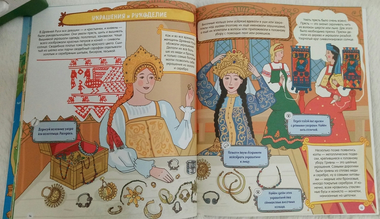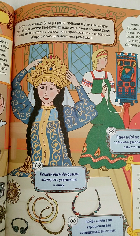 Девочкам будет интересно посмотреть, какие раньше были украшения, и они даже смогут побыть личным стилистом у древнерусской красавицы.