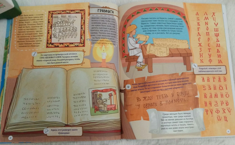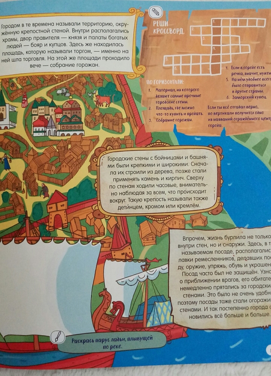 Творческая тетрадь для обучения и развлечения Кому на печи лежать хорошо, или как жилось в Древней Руси от издательства Клевер. Она у меня мысленно сразу встала в пару с еще одной книгой от Клевера, как книга- энциклопедия и тетрадь с заданиями