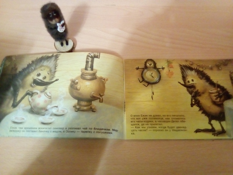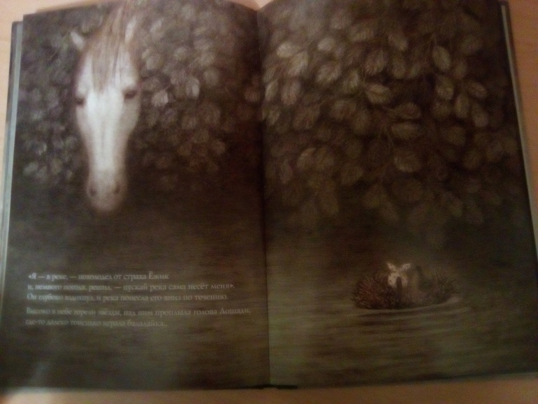 Тканевый корешок, мелованные страницы, и потрясающие иллюстрации. Читаю книгу иногда просто для себя, мысленно озвучиваю героев теми голосами, которыми они говорят в мультфильме, возникает ощущение "присутствия", словно ты тоже там, в сказочном лесу, идешь вместе с ёжиком, в тумане, на голос друга...
