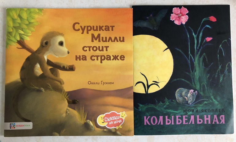 Две хитовые книги с клапанами. Левая дико красиво иллюстрирована. В начале читали ее всегда по кругу раз по 10, но сейчас уже можно обойтись одним, если вовремя поквзать следующую)) Правая тоже очень нравится ребенку. Прочли 5 раз. Она новая.