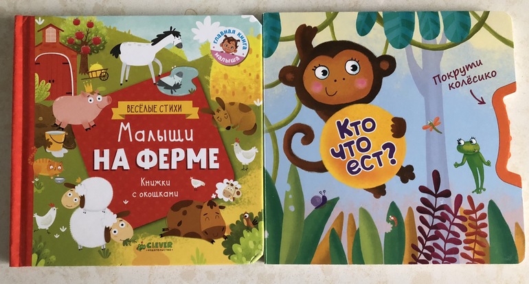 Левая книга - это отдых для мамы. Ребенок просто ковыряет ее сам. Это даже не чтение. Пособие типа «найди и покажи» с вырубкой.