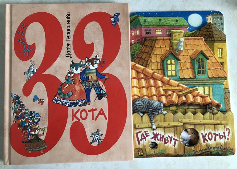 Азбука со стихами на каждую букву слева «33 кота». Очень странные рисунки - ребенок одобрил (хотя многие книги сразу закрывает и привет).