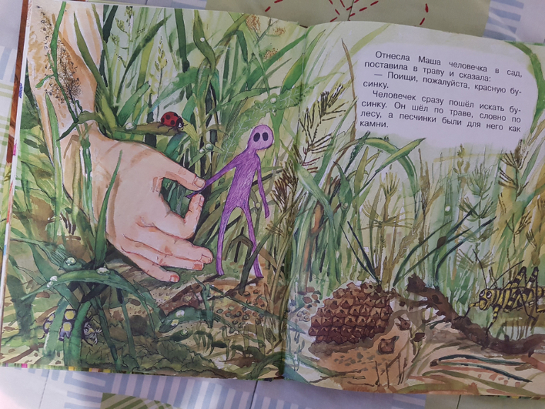 Маша потеряла свою бусинку и отправила на поиски её бумажного человечка.Но в траве оказалось опасность на каждом шагу. Миссия казалась невыполнимой