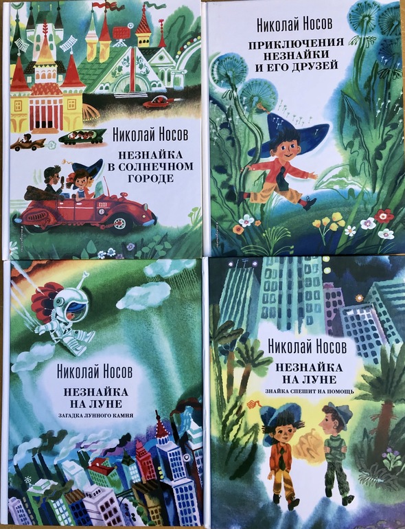 Незнайка это вообще отдельная тема. я всё откладывала с покупкой, не знала, что выбрать.. и даже не догадывалась, что книги с иллюстрациями Борисова уже вышли, мало того их уже не найти по нормальной цене. у меня в детстве была книга Незнайка на Луне(Знайка спешит на помощь), как же я любила эту книгу, сейчас, когда листаю помню все образы и ассоциации от этих иллюстраций. для меня в том возрасте она была невероятно интересной. Короче говоря, сбылась мечта идиота, купила я в Читай городе 4 книги с Борисовым и была очень счастлива))) т.к. пришлось их "вылавливать". В итоге, дочке абсолютно не интересны 2 книги (приключения Незнайки и Незнайка в солнечном городе). а вот 2 книги про Незнайку на Луне очень заинтересовали.