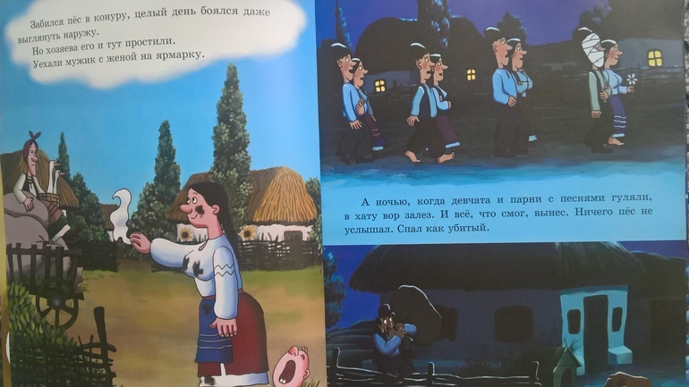 Ну и напоследок веселая и красочная книжка издательства Время Мастеров "Жил-был пес" по одноименному мультфильму. Ребенку, конечно, ни юмор, ни отдельные моменты (как Пес, например, вешаться собрался) пока непонятны и не нужны. Отложим на потом...