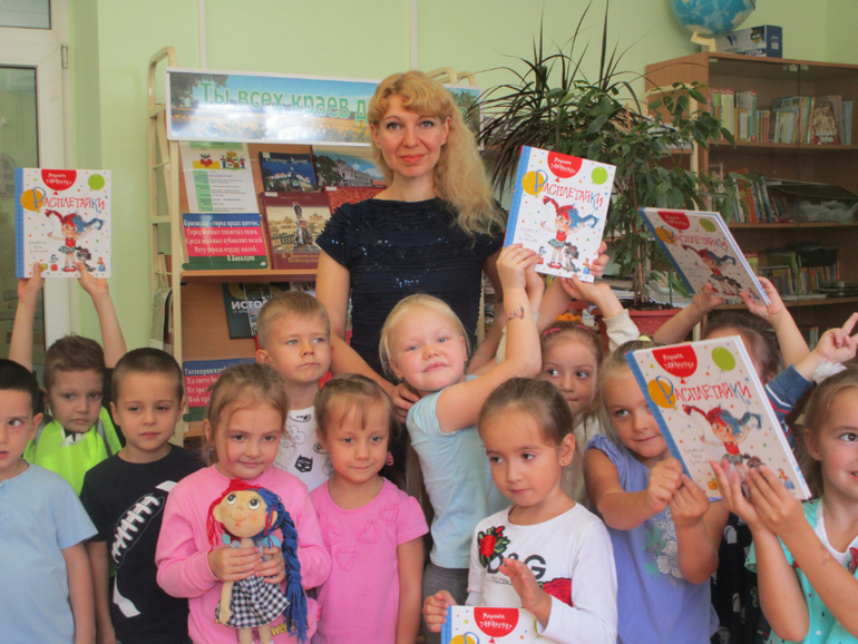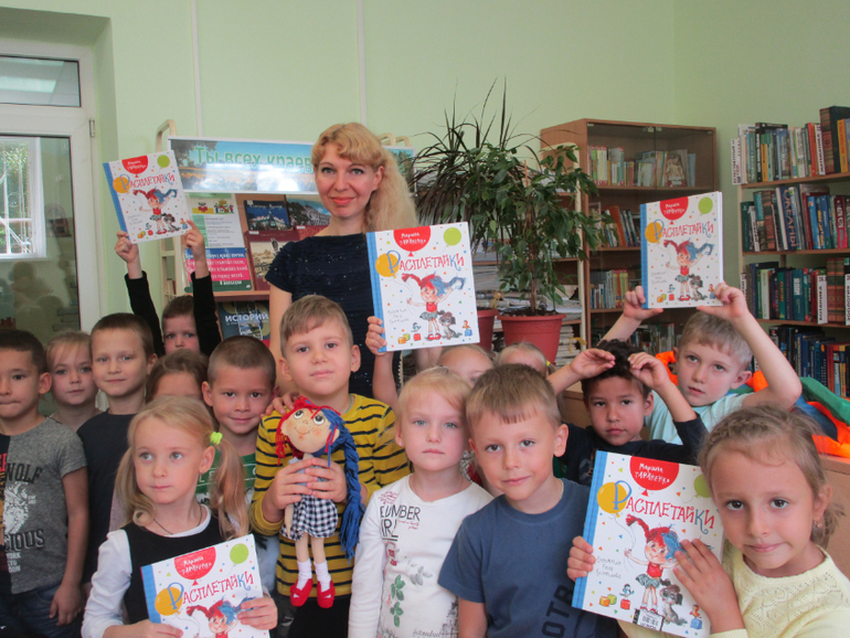 "Это удивительно - видеть свою книгу в библиотеке, в которую я приходила, когда мне было семь лет. Первая в моей жизни библиотека! Детская библиотека им. С. Я. Маршака. Я часами выбирала там книги и чувствовала себя очень взрослой, потому что выбирала их сама)) Теперь прихожу туда, чтобы встретиться с читателями, и сегодня Тайка-расплетайка познакомилась с мальчиками и девочками из детского сада. Она даже разрешила подергать себя за косы. Друзьям можно))"