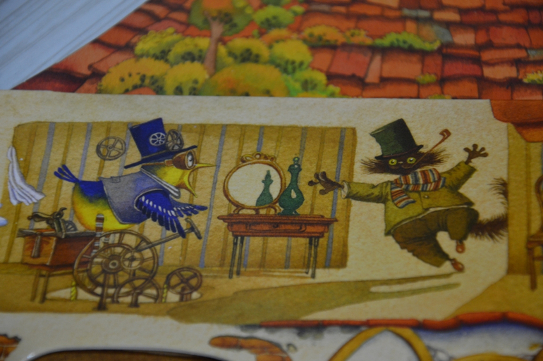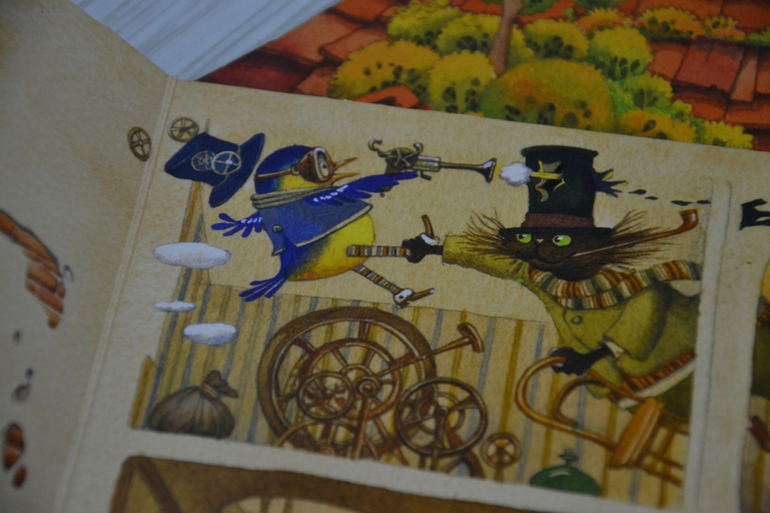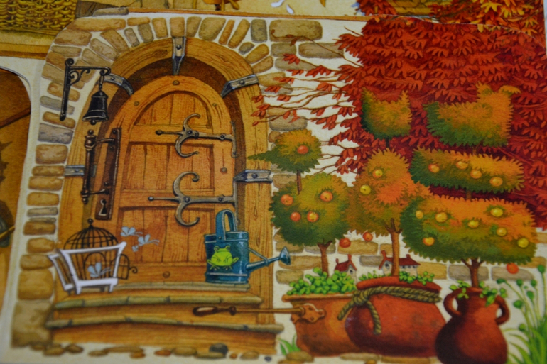 Книга многоуровневая, картонная, картон плотный, уголки закругленные, качество печати отличное. Художники - Дмитрий Непомнящий и Ольга Попугаева. Художники постарались на славу - столько деталей, которые рассматриваешь, рассматриваешь, и все равно что-то новое находишь.