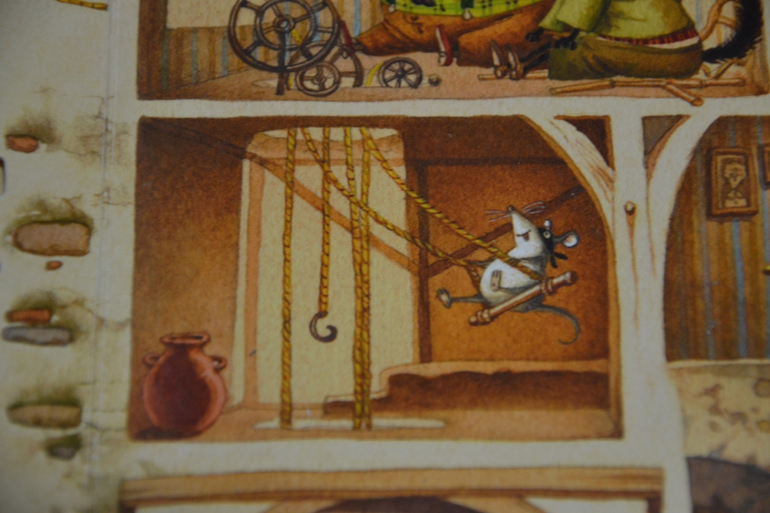 Вообще, вот это все можно разглядывать часами. Кота, мышей, корову, убранство дома. Дом такой, кстати, английский. С красной крышей и трубой.