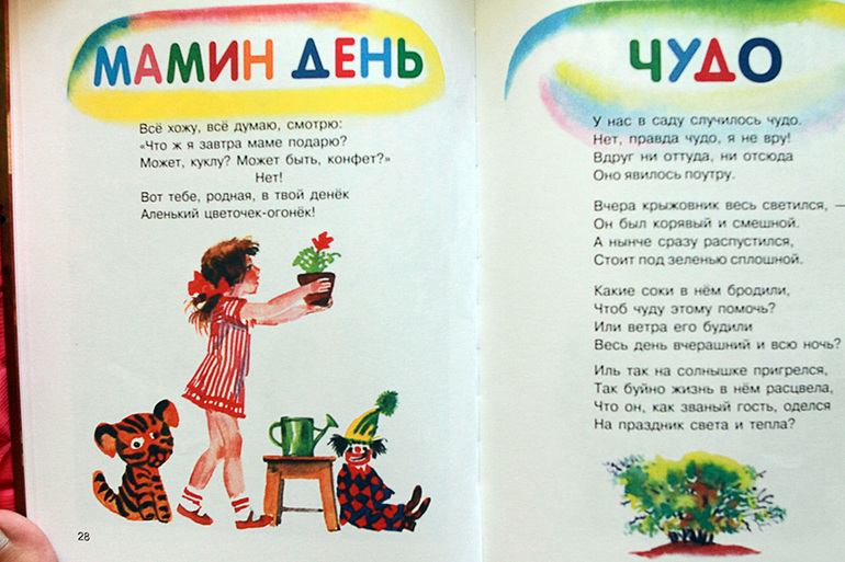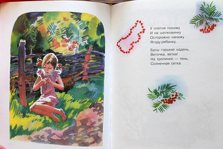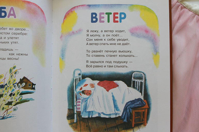 Улетают-улетели Благинина. Книга построена посезонною. Плавно стихи с иллюстрациями нас провожает весь год, из осени в зиму, потом весна и лето. Дочь книжку любит, и если начнем читать то непременно всю разом, но меня частенько не хватает, хотя держусь до конца. В отличии от дочери мне читать всю книгу стихов сложно.