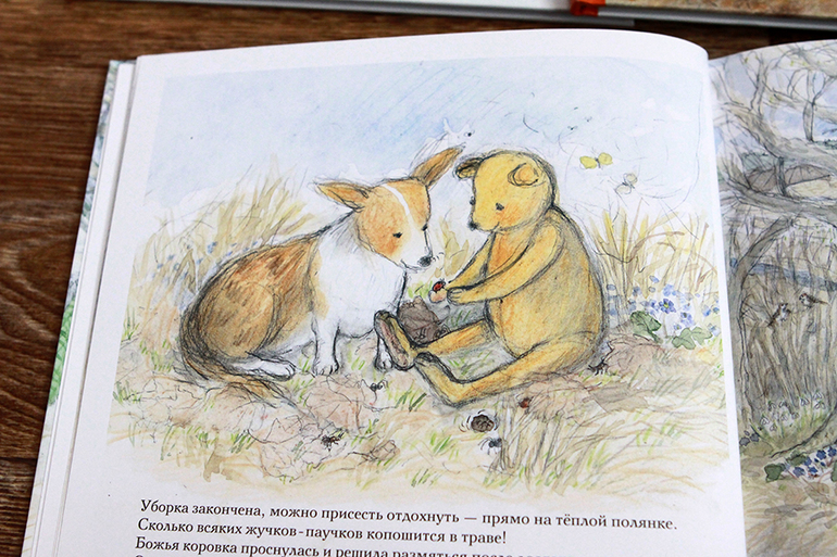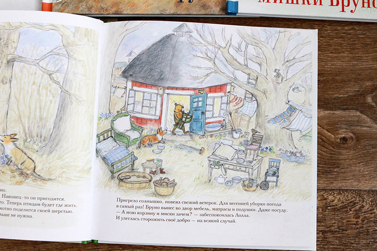 И что необычно, это Мишка Бруно. Дочь сама просила читать. Смена сезонов, весна потом лето. И все под уютные мишкины будни. Мне и самой нравится. Только эту серию читали и все, остальные книги ей были не интересны. Да осудят меня многие, но часто дочка просила почитать под еду ))) Вот только их просит - уютные, тонкие, нежные книжки, под которые хочется кушать котлетки с пюрешкой и запеканку ))