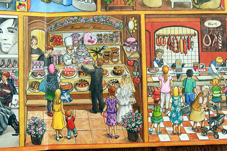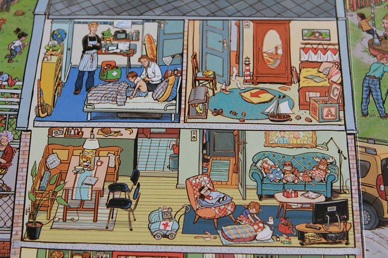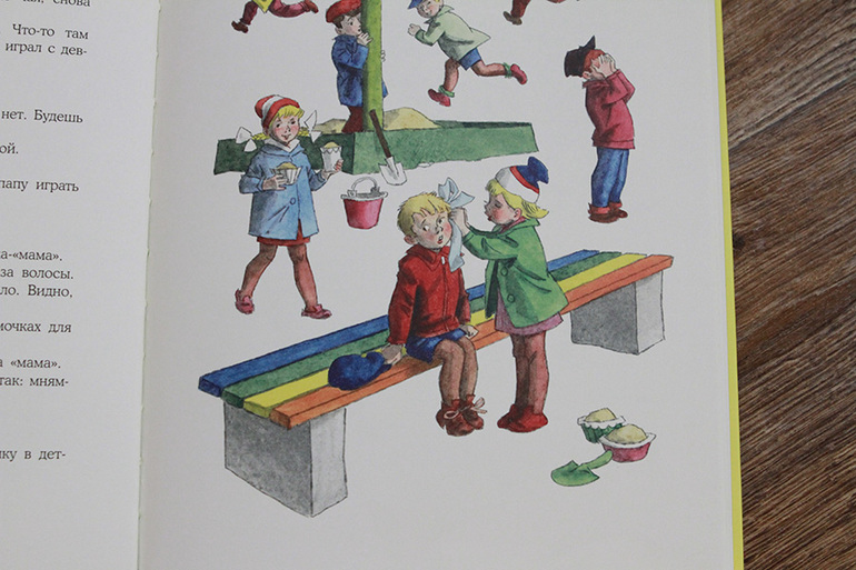 После садиковских книжек вспомнились виммельбухи, которые более полугода забытые стояли на полке - «Соседи» и «Однажды в городе». Читали и читаем каждый вечер, вернее разглядываем, а я отвечаю на вопросы. Почему, а почему, а почему, а почему ))) Дочка подросла, другой взгляд на происходящее, да и я вижу новые завязки в повествовании, самой интересно. «Мельтешащие картинки» оказались самыми востребованными. Удивительно. Вспоминаю эти вечера с нежностью и улыбкой. Сидим с дочкой в обнимку на ее кровати и под лампой разглядываем кто куда пошел из «Соседей» и главное зачем. А в открытые окна ненавязчиво слышно лето во дворе - почти в темноте дети играют в футбол, кто-то сидит на лавочке и бренчит на гитаре, смех, и собаки тоже лают как-то по-летнему )))