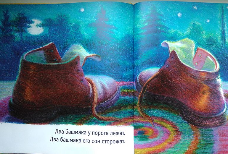 Два башмака Коняшова - эта удивительная книга одна из трех любимок поэзии на все времена. Всегда читается только по инициативе дочери, именно она сама часто ее просит читать. Уютная, милая книга, в основном из-за иллюстраций.