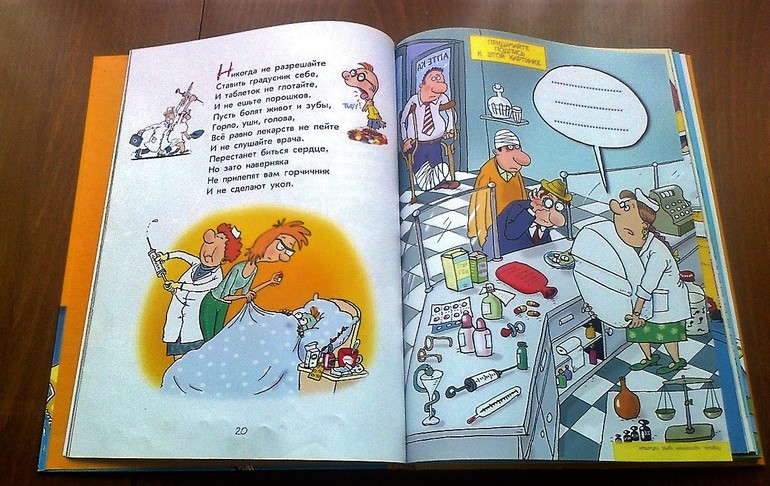 Эту книгу я также оставлю дома. Для меня это шедевр и содержания, и оформления. Когда читаю книгу Даше вслух, частенько замечаю какие-то новые моменты в оформлении, подписях, какие-то детали, не замеченные ранее. Очень много так называемых «культурных скреп» - цитаты из фильмов, контекста времени - то, что мы, рождённые в СССР, понимаем, и то, что уже не всегда понятно тем, кто помладше. Думаю, что можно будет уже скоро начать Гайдая смотреть.