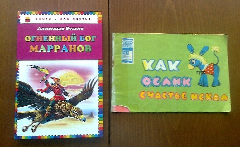 «Как ослик счастье искал» Это из папиного детства, иногда перечитываем эту нехитрую книжечку, обычно перед самым сном, когда мама - я читать уже отказывается, а ребёнок хитрит, чтобы ещё чуть-чуть оттянуть момент отхода ко сну.