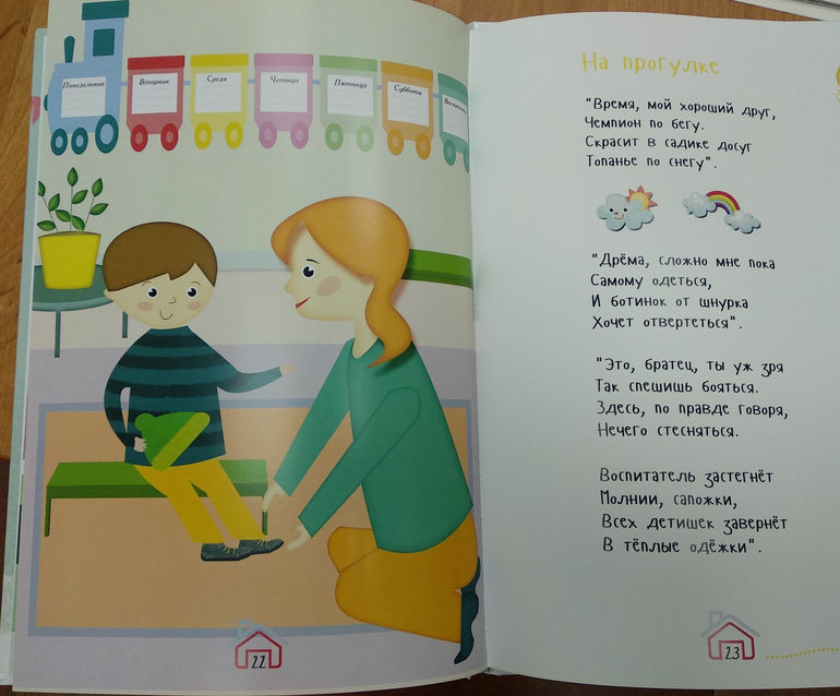 В легкой стихотворной форме в книге происходит знакомство ребенка с жизнью детского сада, а ведет по страничкам книги волшебный персонаж Дрема