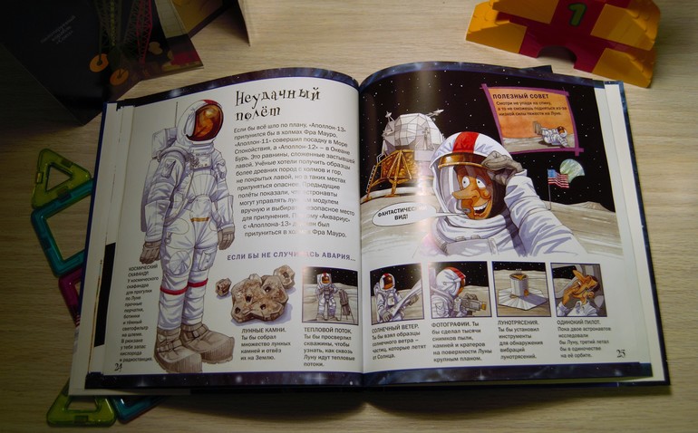 Эта книга о полете к Луне на "Апполоне-13". Написана она так, как будто читатель сам в этом участвует. "Ты полетишь, ты завтракаешь, тебя осматривают, ты поднимаешься на лифте на пусковую вышку.." Мне не хватило художественности языка, информацию тебе разжевали, предоставили - ешь... С рисунками совсем беда какая-то... Честно, мне не понравились. Наверное, это модно, в стиле комиксов. Ну и много физиологических и денежных подробностей. Возможно, о них надо говорить, но "моча в пластиковых пакетах, плохо пахнущий космонавт... , а это дорого, а скафандр стоит 1.5 млн. долларов".