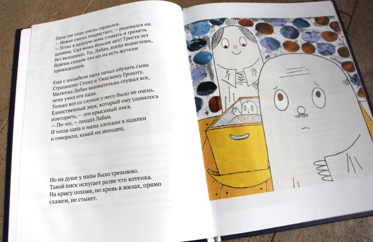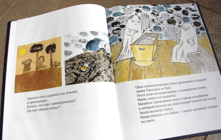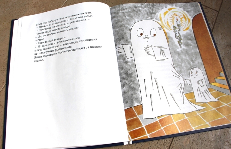 История рассказывает про малыша, появившегося в семье привидений. Малютка Лабан с удовольствием помогал маме в домашних делах, но никак не мог справиться с папиной наукой - как стать настоящим привидением, как наповал пугать людей. Лабан очень переживал, что у него плохо получается пугать людей. Переживал как настоящий ребенок переживает свои детские неудачи. Тут автор очень правдиво написал.