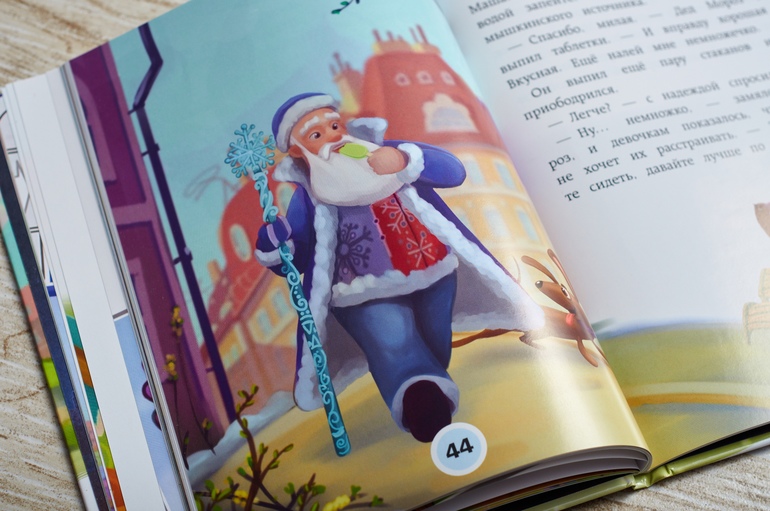 мне прочесть пока не дали, но в истории есть Дед Мороз. Мелованная бумага, история короткая.