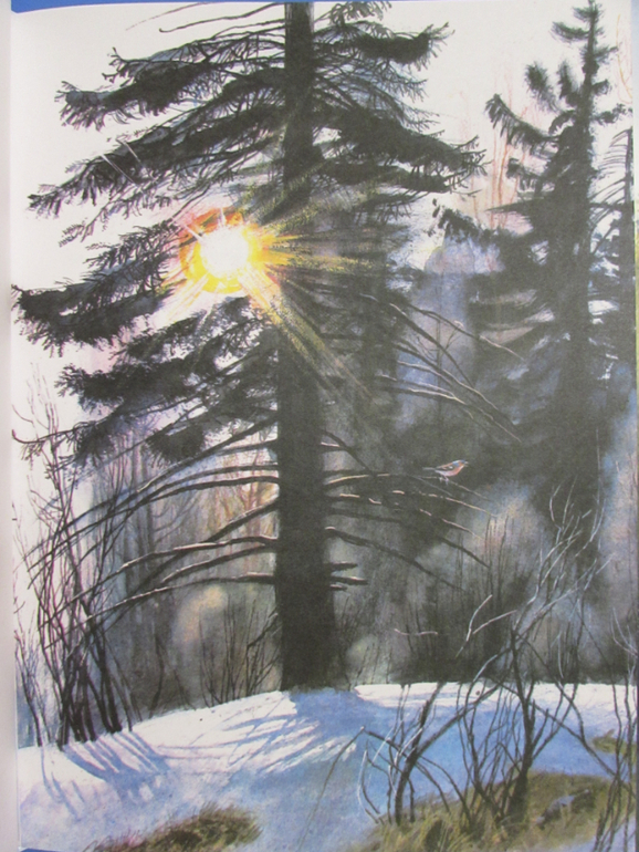 Согласилось Солнышко быть судьёй. Принялись живописцы за дело. Первой вызвалась написать картину Зимушка-Зима.