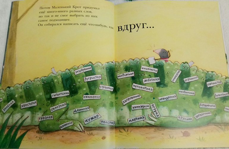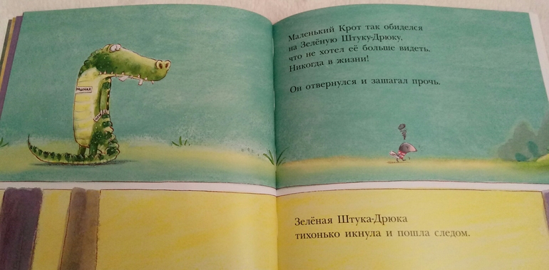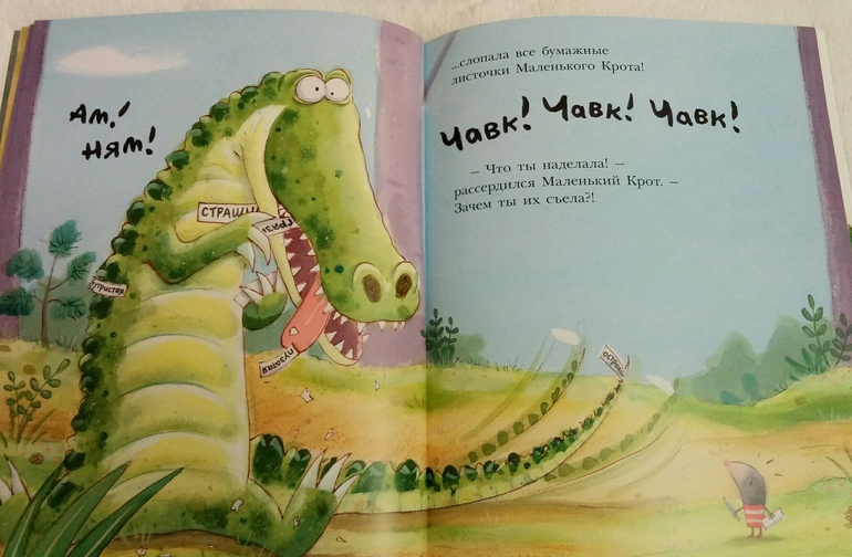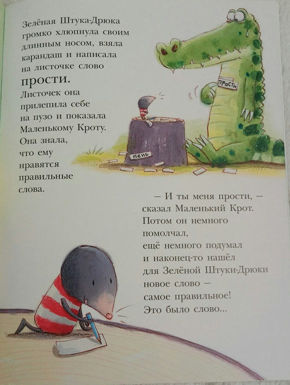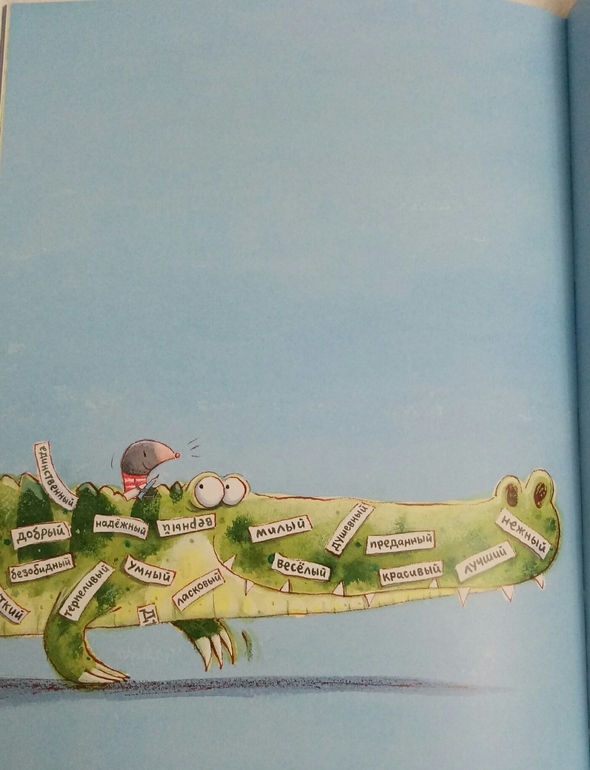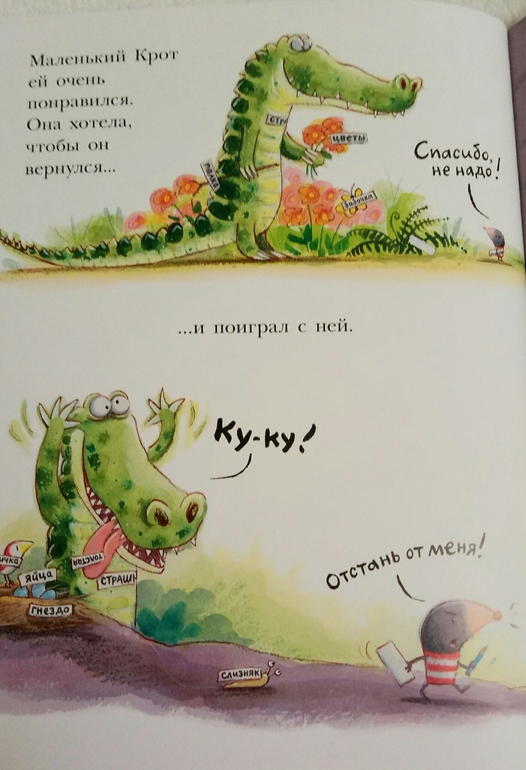 А еще это отличная книга для развития речи, вот например, Кротик аж 31 слово- определение придумал для крокодила, а Вам слабо?))