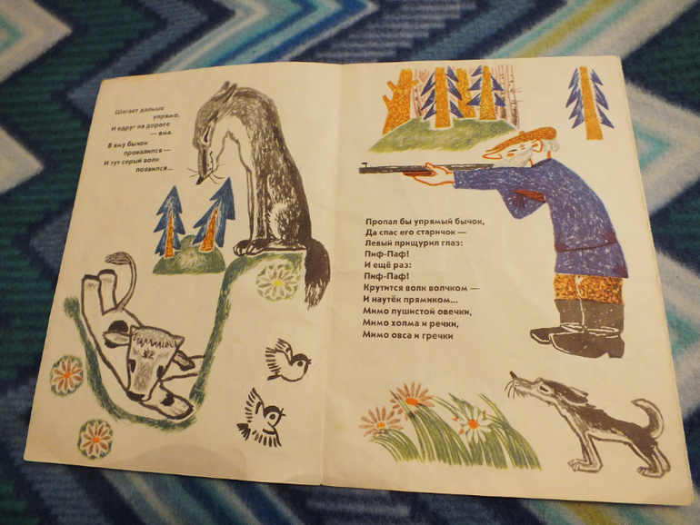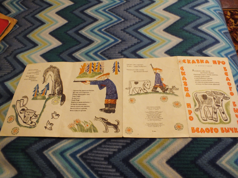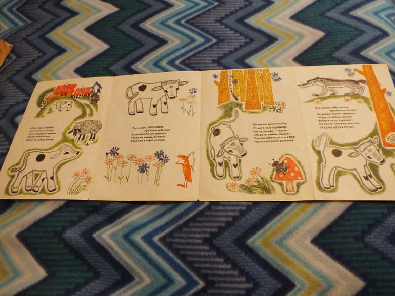 Вы не поверите,но мне никогда не приходило в голову,что вот эта присказка:"Рассказать тебе сказку про белого бычка?!"-,которую часто говаривала мама -это книжка..Откуда она ее знает и почему только эту строчку,звучащую рефреном по всех коротенькой стихотворной сказочке,дознаться пока не получилось.Для меня это кандидат в переиздания.Безусловно,на картоне!!а если панорамкой!!!