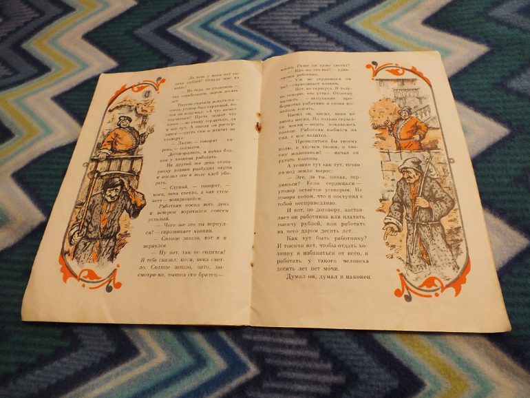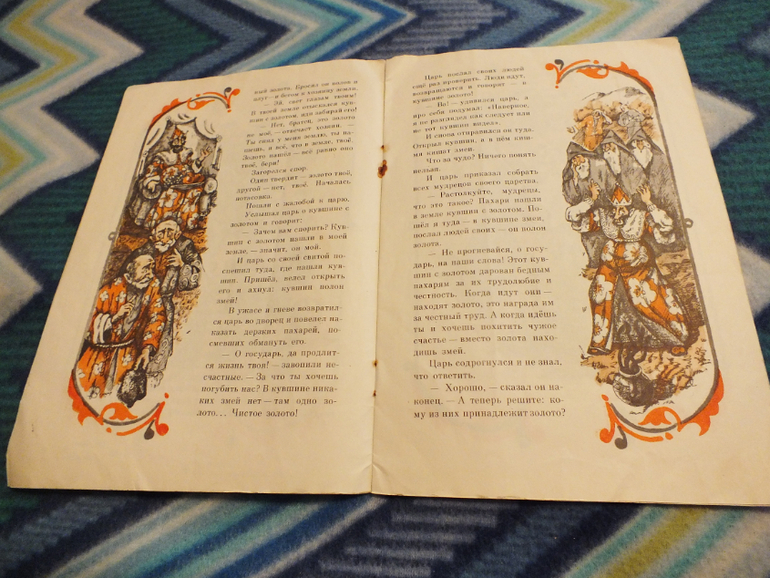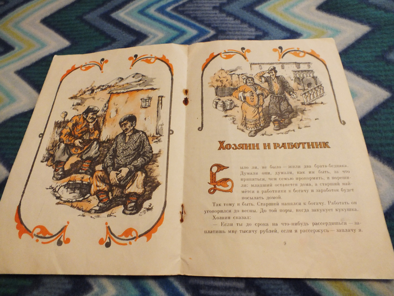 И еще приятная книжечка.Больше содержанием,нежли рисунками.Хотя на мой взгляд они здесь очень органичны.Всего две сказки в книге.Но это тот пример сказок,которые я люблю,.Первая сказка про честность и справедливость.Вторая про находчивость.Без всяких непонятных жестокостей и очевидной алогичности,без волшебства,бытовые.До сих пор мне только один сборник такой попадал