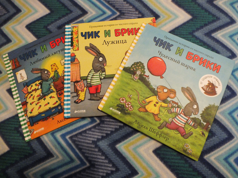 Аналогично с Чиком-Бриком.Честно сказать иллюстратора до сих пор не люблю,шедеврами его работы не считаю,хотя безусловно они узнаваемы.И книг у нас уже много с его иллюстрациями.Та же Дональдсон.Мне кажется,что ее книги,проиллюстрированные другими художниками,только выиграли. В Чиках-Бриках главное- игровой момент.Поэтому думаю даже прикупить новогоднюю с этими героями.Знаю,дочка будет рада.Признаю,что выросли,но дочка еще не готова с ними расстаться.Пусть будут,может самостоятельно перечитает.Олег читал)