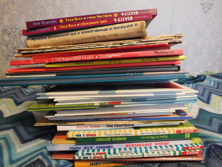 Когда в семье один родитель готов вместо еды книги покупать, это ладно, а у нас и сдерживающей силы, в лице папы, нет)) Ещё и подсказывает, что ему в детстве нравилось, что купить))