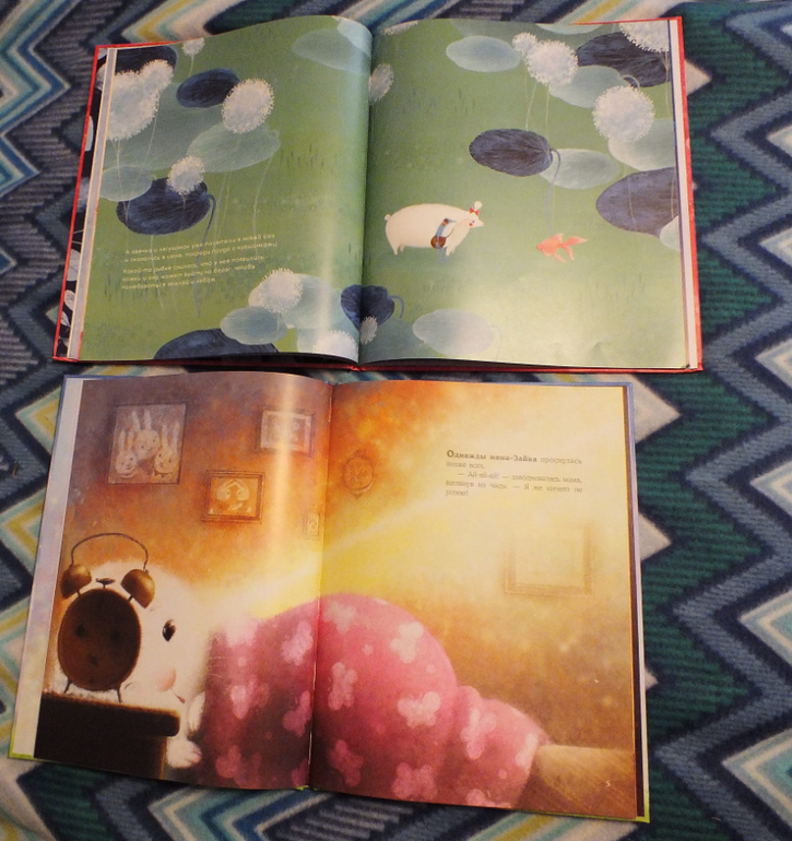 Сонная книга досталась нам по книгообмену.Мы любители подобных иллюстрации.Прятки, например зачитаны до того,что корешок треснул.Очень нежная,как будто вышитая акварелью..и простая.