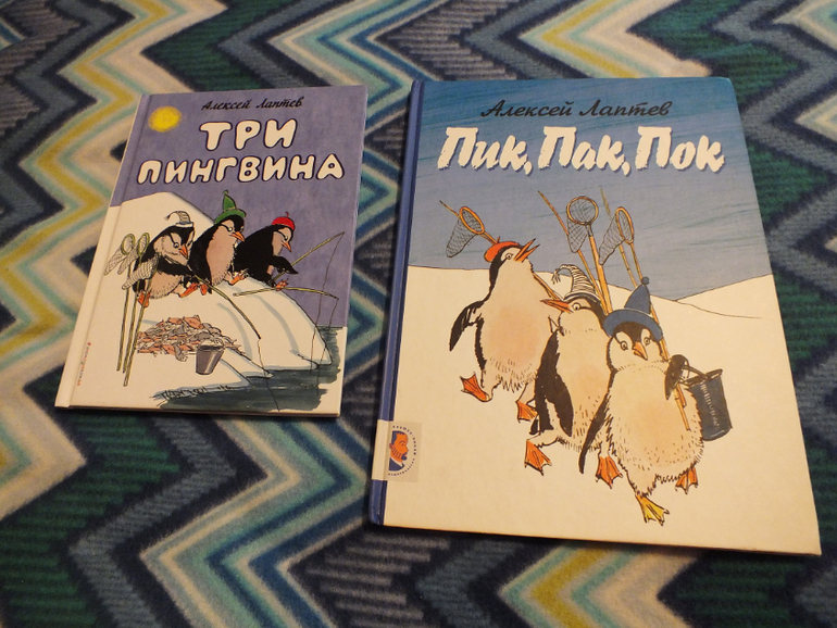 С Пик, Пак, Пок та же история. Я перед покупкой книги от М-Ш брала в библиотеке книжку с Футы-Нуты (по-моему полный дубль Трех пингвинов, только формат другой). Так я потом расстроилась, мы про этих зайцев наизусть знали, а концовочки-то нет у М-Ш)) Не знаю, какой из вариантов первоначальный, но мне этот герой нравился)
