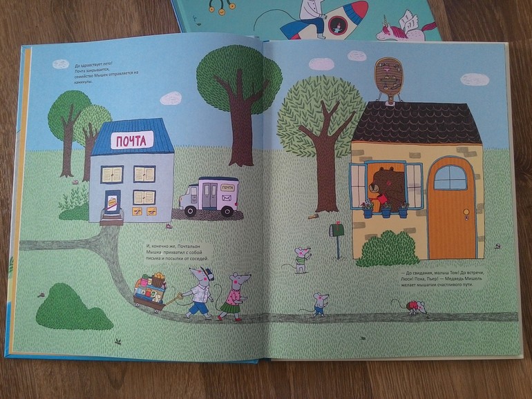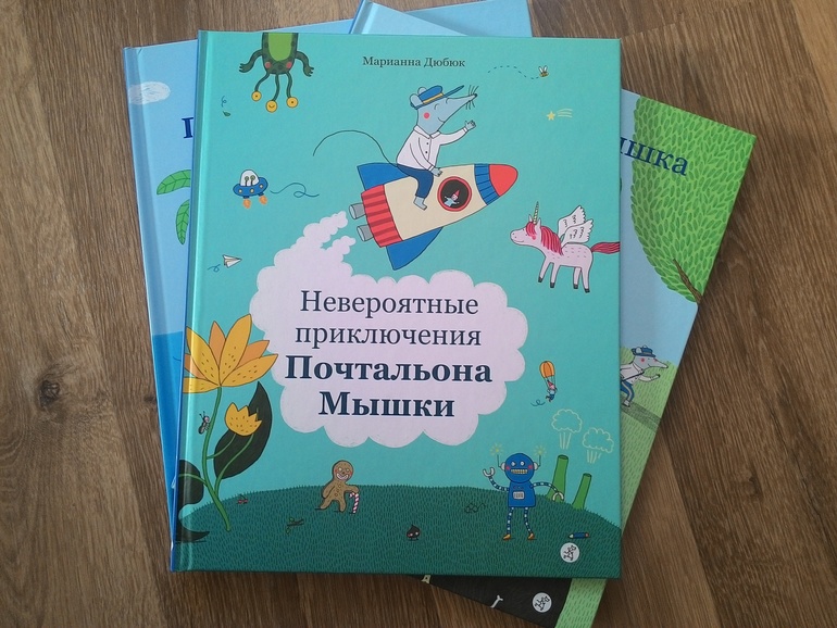 "Почтальона Мышку" Марианны Дюбюк "Самокат" издал в трех частях, в каждой из которой рассказывается о неутомимом Мышке, его семье и их приключениях.