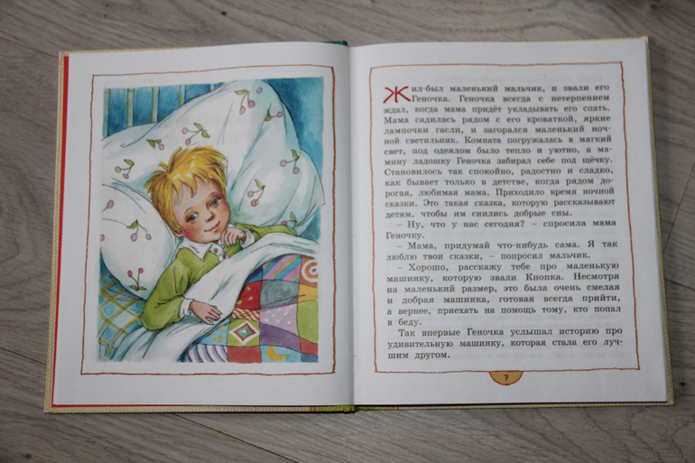 Каждый вечер мальчик Геночка засыпает под сказки мамы про машинку Кнопку. Хоть эта очень маленькая машинка, но она очень добрая. Она попадает в разные приключения, помогает друзьям, спасает щенка, путешествует на воздушных шариках, плавает на утках и много чего другого.