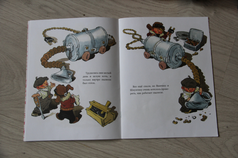 Книжка прям мальчуковая-мальчуковая, Винтик и Шпунтик придумали, чертеж начертили, ни и сделали... А получилось помощнее чем надо, вот и засосало туда много всего, аж очередь утром выстроилась за вещами.