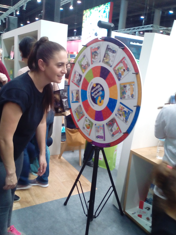 У них можно было попробовать выиграть книгу. Надо было покрутить"волшебный барабан", выпадала какая-то определенная "научная тема": животные, детский сад, погода , и ведущая задавала вопрос, если ответ был правильный, можно было выбрать книгу, если нет-то выбрать можно было "малышку" PIXI.