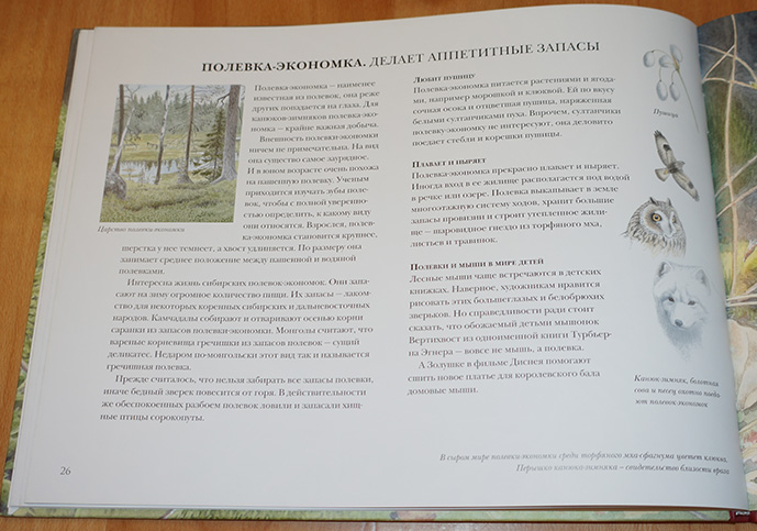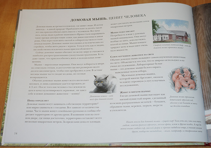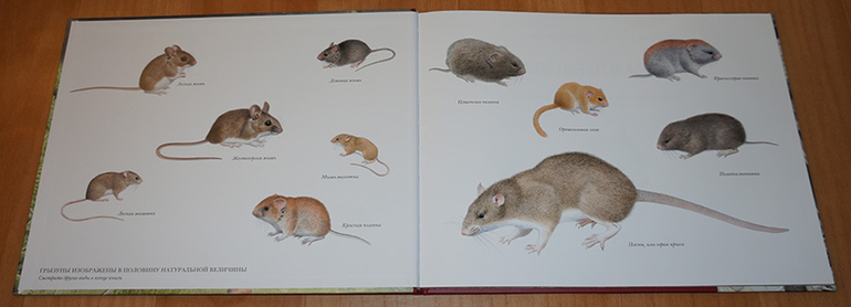 Кроме всего вышесказанного следует отметить, что каждый разворот этой замечательной книги содержит не только интересную информацию об одном конкретном виде мышей, но и великолепную полностраничную иллюстрацию.
