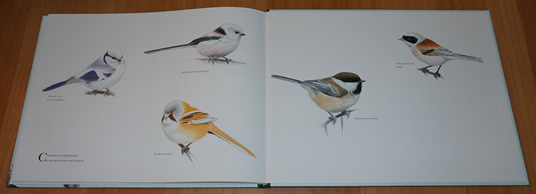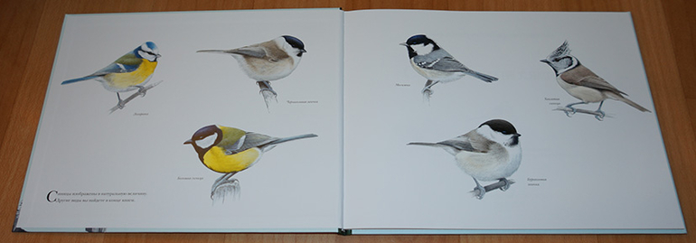 На форзаце и нахзаце книги - великолепно выполненные изображения синичек разных видов в натуральную величину.