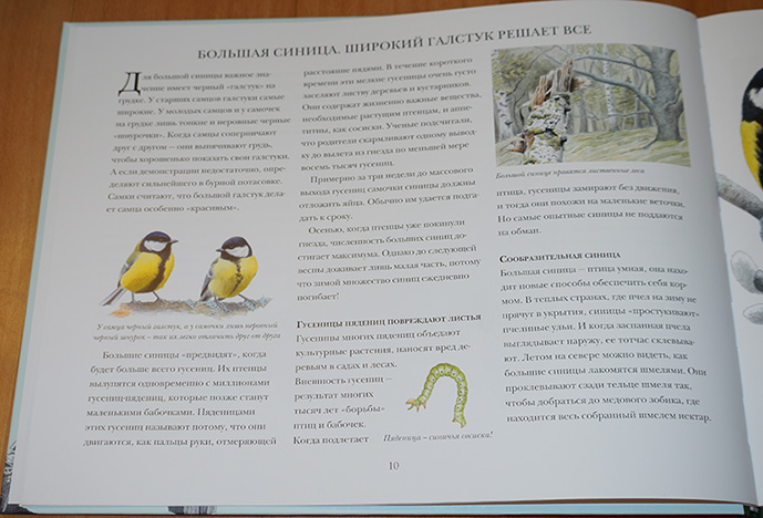 Кроме того, в книгах рассказано о хищных птицах, которые предпочитают охотиться на синичек.
