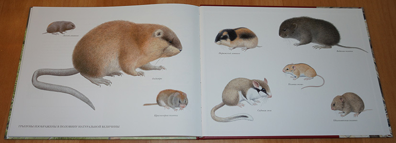 Грызуны - они чуть побольше птичек будут, поэтому на форзаце и нахзаце все эти хвостатые и мохнатые изображены в половину натуральной величины.