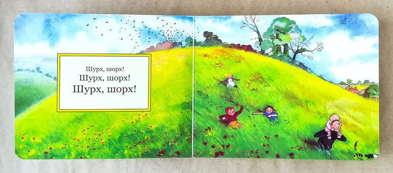 Еще одна ООООчень известная книга-игра (потому и далеко не дешевая). Мы с Ксюшей много в нее играли, «ловили медведя», пробирались через «траву», «плыли по реке», устраивали пещеру и в конце прятались под одеяло. Книжку можно и просто читать, но тогда суть ее как-то теряется.