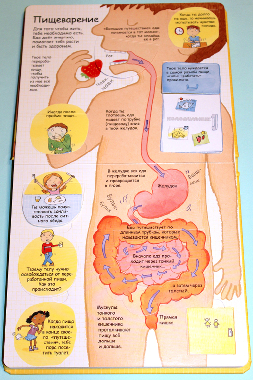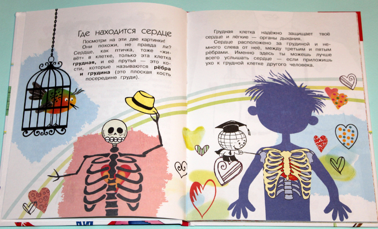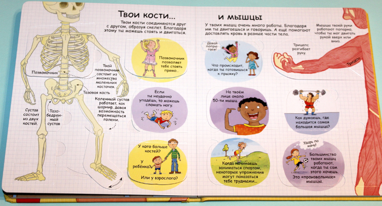 Информация подана довольно подробно, но все в пределах понимания 5-6 лет. Эту книгу я с уверенностью могу назвать лучшей для первого ознакомления ребёнка с анатомией. Не зря в сообществе было очень много хороших отзывов на нее. Я книгу купила давно, дочка несколько раз изучила её вдоль и поперек. А в сентябре, когда мы вплотную занялись анатомией, любовь к книге вспыхнула с новой силой)).