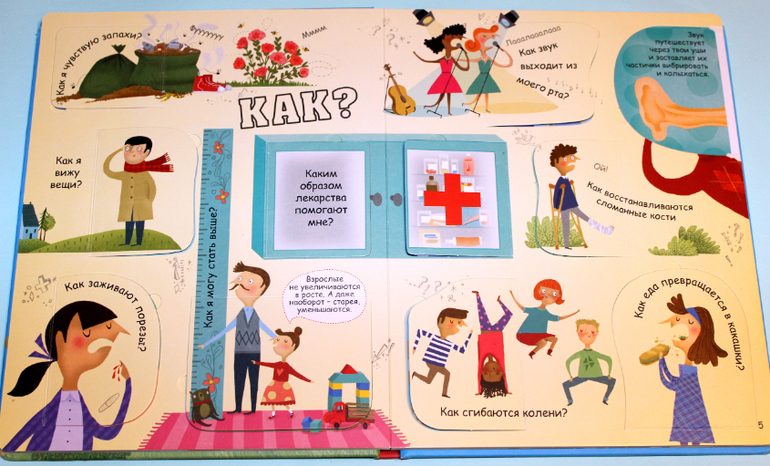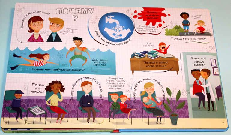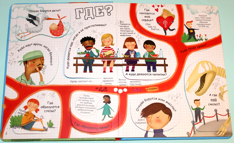 Идеальная книга для почемучки, тут даже развороты подписаны: "Что", "Где", "Как", "Почему" и т.д..)) Все вопросы связаны с анатомией. Чем мне понравилась именно эта книга? Да то что в ней нестандартные вопросы. А дети, как известно, те ещё выдумщики, иногда такой вопрос завернут, что приходится просить помощи у гугла. Но куда интереснее читать ответы в книге с иллюстрациями, да ещё и с окошками!
