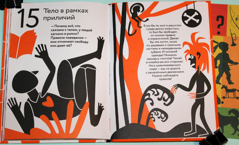 В книге дети найдут ответы на довольно жизненные вопросы: почему люди, в отличие от животных, должны соблюдать правила приличия; почему нельзя прилюдно ковыряться в носу, зубах и других отверстиях в теле; почему не хорошо публично икать, сморкаться, чихать и кашлять, как правильно пользоваться зубочисткой и носовым платком. И ещё много интересных фактов приводит Варвара Мухина в данной книге. Вряд ли после прочтения у ребёнка ещё останутся вопросы на тему этикета, связанных с анатомией.