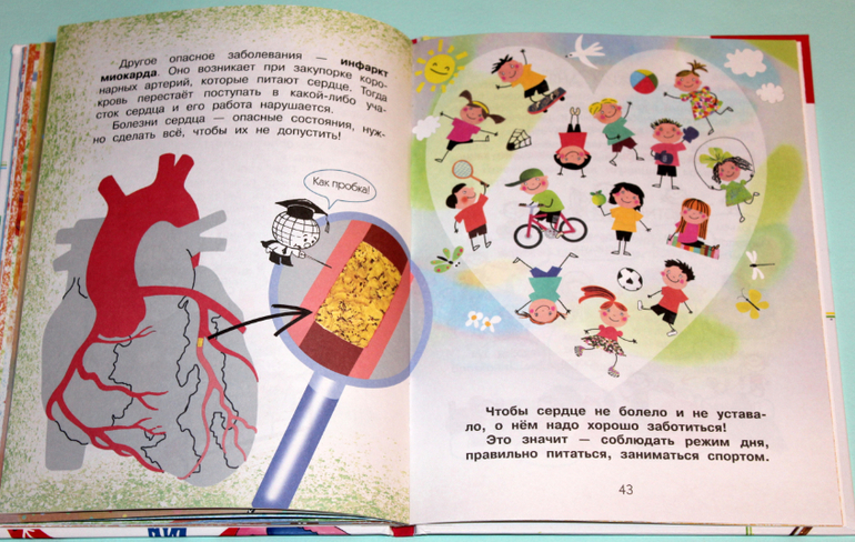 А дальше самое интересное, чего мы еще не встречали в других детских книгах по анатомии. Начинается рассказ о железах, гормонах, адреналине, о сердечных болезнях и их профилактике. И ещё понравились пометки под названием "Это интересно!" Там действительно интересные факты.