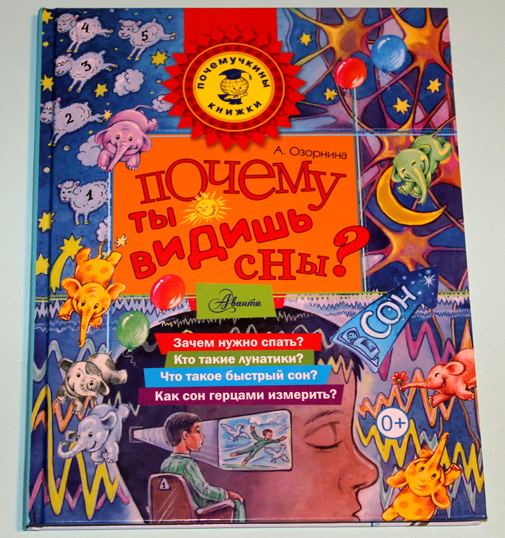Многое в книге о снах стало для меня открытием. Алла Георгиевна Озорнина рассказывает детям, что сны видят абсолютно все люди, но далеко не все их помнят. И что сны нужно записывать сразу после пробуждения, иначе он стирается из памяти полностью через 10 минут, только в редких случаях мы запоминаем сон надолго. Из книги читатель узнает, что сон бывает быстрый и медленный и как каждая фаза сна важна для человека. Наше настроение и общее состояние утром зависит от того, в какой фазе сна мы были, когда проснулись. Если будильник возвращает нас в реальность из медленного сна, то мы будем вялыми и хмурыми. А вы знали, что цветность сна зависит от склада мышления человека? Любителям точных наук снятся чёрно-белые сны. а утончённым натурам и фантазёры видят сны цветные. Содержание снов зависит от наших увлечений. И животные и птички, все видят сны!