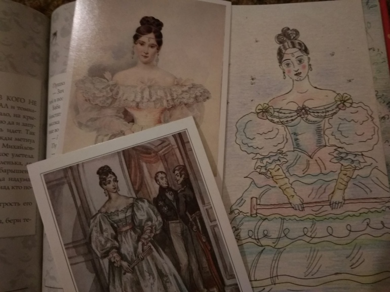 Мне очень понравилось оформление книги альбомного формата. Кажется, что все так легко, будто случайно-небрежно, но единственно удачно, правильно и к месту расположено. Именно так и никак иначе - в этой легкой, чуть небрежной манере пушкинских рисунков-черновиков, на страницах книги так похожей на "уездной барышни альбом"