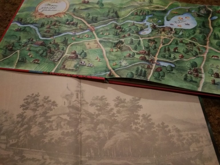 Форзац и нахзац с картой "того уголка земли" сразу переносит вас в места, где все это случилось, где было поймано вдохновение. Знакомые названия сел, река с озерами, мостики, усадьбы, церковки - здесь, здесь, как и в Царском селе, "каждый шаг в душе рождает воспоминанья прежних лет"...
