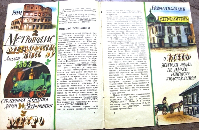 Книга 1983 года рождения. Я почитала Википедию и узнала, что на тот момент никто метро еще не видел, но, наверняка, каждый житель города ждал. Начали строить метро в Новосибирске в 1979 году, а запустили 1986 году. Эта книга должна была быть бестселлером, ведь интернета не было, а знать охота всегда.