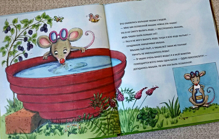 Конечно, с детьми можно провести несколько простых, но интересных для них опытов с водой, чтобы разобраться в понятии объема. Но иногда полезнее немного об этом почитать в шутливо-игровой форме, переварить полученную информацию и только потом приступать к практическим занятиям.