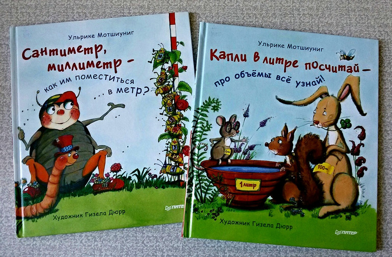 При переводе из миллилитров в литры дочку слегка переклинило. Чуть позже она с этим разобралась на практических примерах. А чтобы все выученные нами единицы измерения объема и длины не забывались, я периодически подсовываю эти книги дочке для самостоятельного повторения.