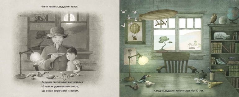 Сегодня отличный день, чтобы отправиться в путешествие. Финн помнил истории, которые рассказывал ему дедушка. Где-то далеко есть место, где океан встречается с небом, где парят киты и медузы и плывут по небу птицы и волшебные замки.